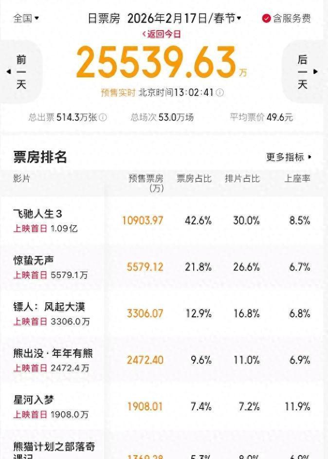 可今年这盘大餐,看着也不太香。虽说预售总票房已破3亿,但大年初一单日预测也就11亿上下,跟往年比差了一大截。目前只有《飞驰人生3》勉强冲过亿,其他片子,哪怕是顶流主演的大制作,预售也才六千多万,愣是找不出个能打的二当家。